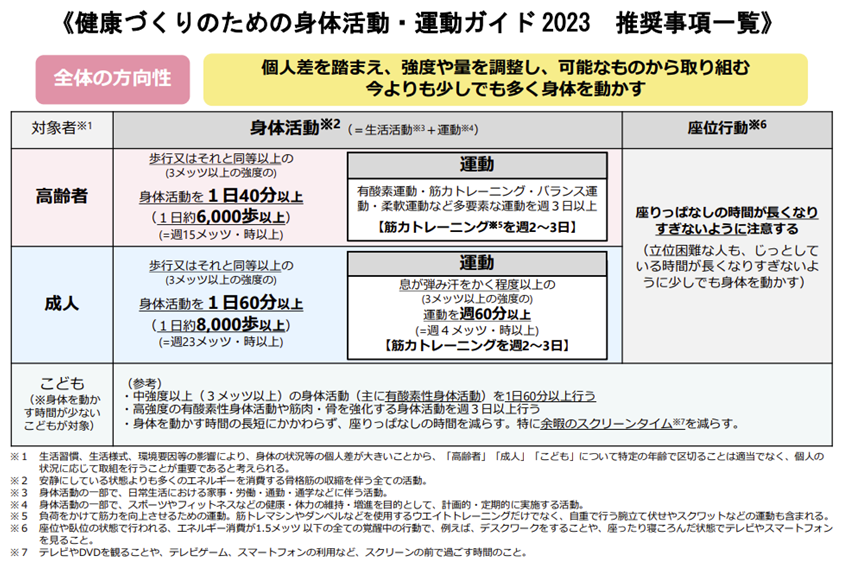 出典:厚生労働省「健康づくりのための身体活動・運動ガイド 2023(概要)」