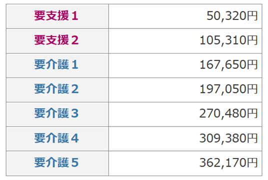 また、要介護度別に利用できる介護サービスの限度額(支給限度額)が定められています。